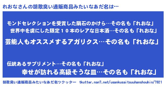 | ヘコむあだ名 | 『酢こんぶ』『れおっちょ』 |