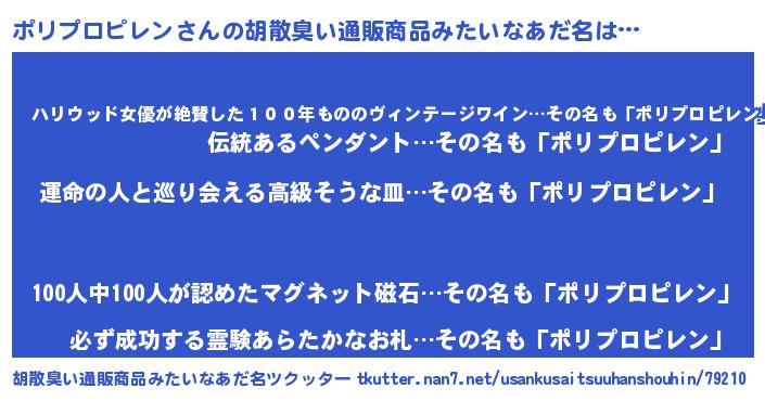 | 意味不明あだ名 | 『ポリプロピレンフォーエバー』 |