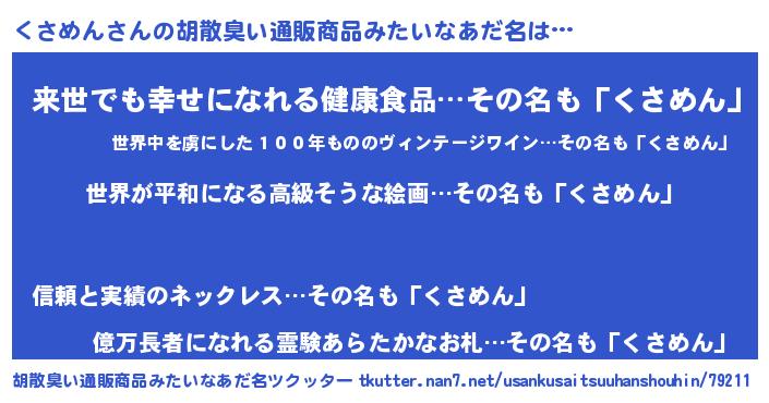 | ヒーロー風カッコイイあだ名 | 『ウルトラくさめんマン』『ネオクサメン』 |