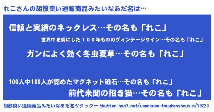 | 意味不明あだ名 | 『自称れこ』『とにかく怪しいれこ』 |