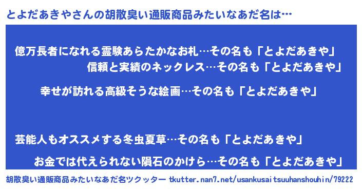 | 意味不明あだ名 | 『とよだあきやフォーエバー』 |