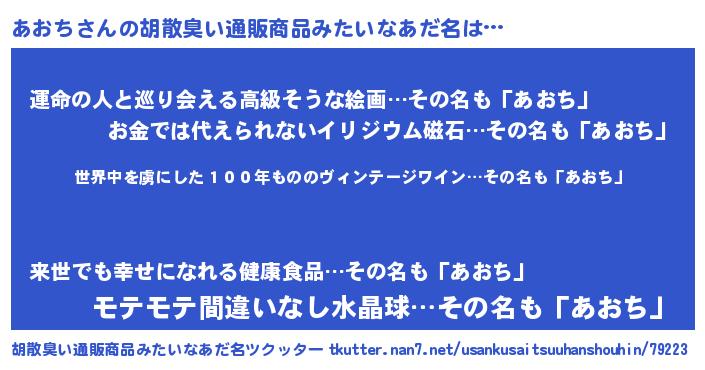 | 意味不明あだ名 | 『住所不定無職あおち(3歳)』 |