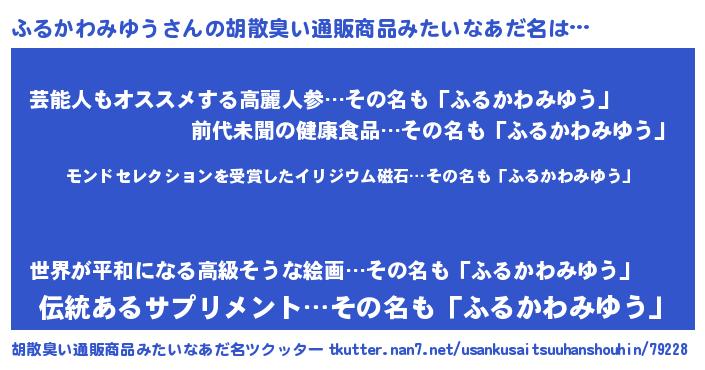 | 男性向けラノベタイトル風あだ名 | 『ノーゲーム・ノーフルカワミユウ』 |