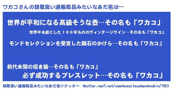 | ヒーロー風カッコイイあだ名 | 『天空の使者ワカコ』『スーパーワカコ』 |