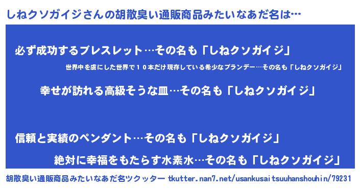| 意味不明あだ名 | 『しねクソガイジフォーエバー』 |