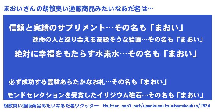 | 意味不明あだ名 | 『永久保存まおい』『まおいフォーエバー』 |