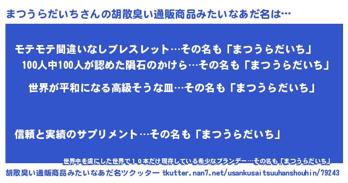 | 欧米人風あだ名 | 『まつうらだいちクリステル』 |