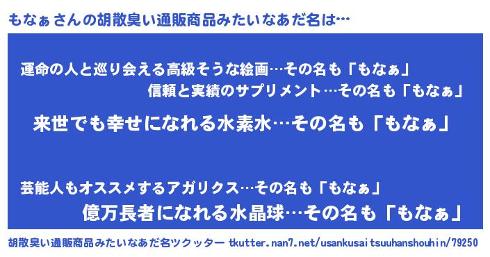 | 意味不明あだ名 | 『永久保存もなぁ』『もなぁフォーエバー』 |