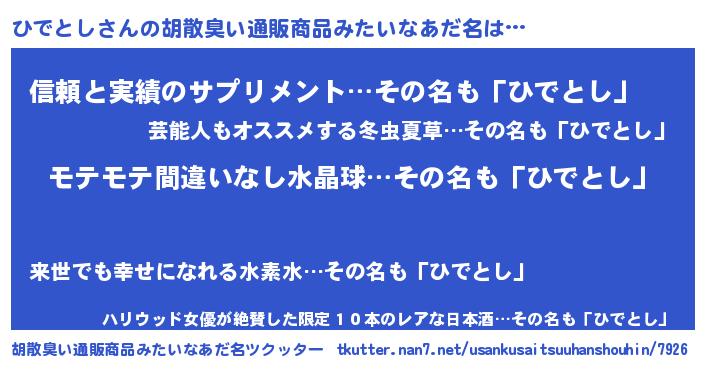 | ヘコむあだ名 | 『ひでにゅー』『ひでっちょ』 |