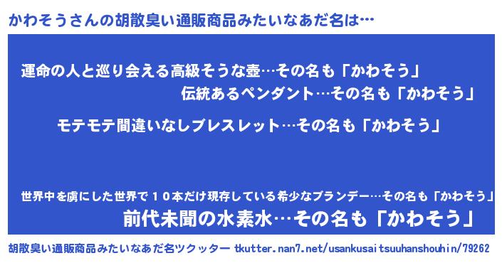 | 男性向けラノベタイトル風あだ名 | 『かわそうの憂鬱』 |