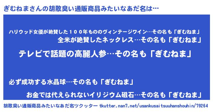 | 恥ずかしいあだ名 | 『ギムネマデラックス』『ギムリンリン』 |
