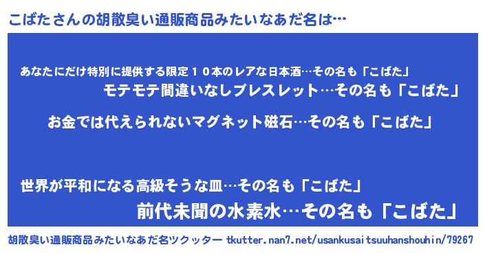 | ヘコむあだ名 | 『こばた(笑)』『こばにゅー』 |