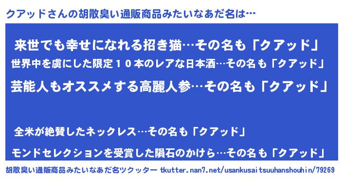 | 恥ずかしいあだ名 | 『クアッドデラックス』『クアちん』 |