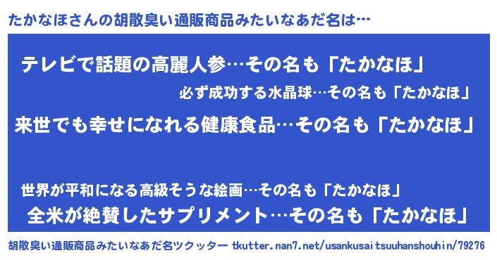 | 意味不明あだ名 | 『永久保存たかなほ』『自称たかなほ』 |