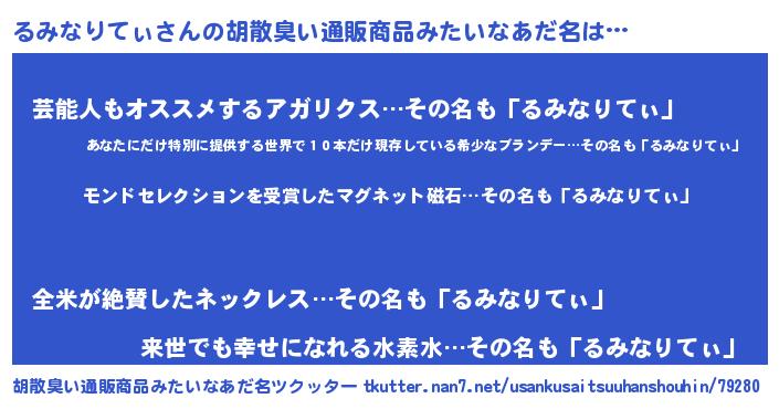 | ヘコむあだ名 | 『るみなりてぃ(小並感)』『るみぷりん』 |