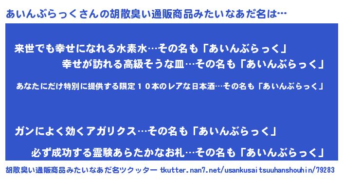 | ヘコむあだ名 | 『あいんぶらっく(笑)』『あいもー』 |