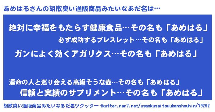 | 意味不明あだ名 | 『自称あめはる』『永久保存あめはる』 |