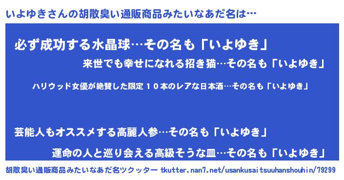 | 意味不明あだ名 | 『住所不定無職いよゆき(47歳)』 |
