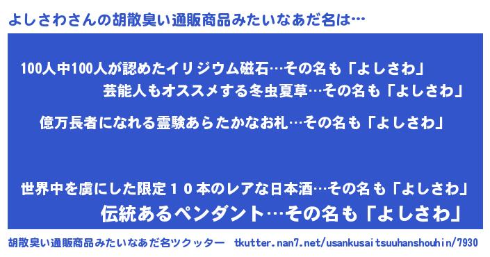 | ヒーロー風カッコイイあだ名 | 『スーパーヨシサワ』『銀牙騎士ヨシ』 |
