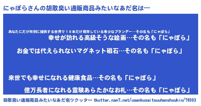 | ヘコむあだ名 | 『にゃにー』『酢こんぶ』『にゃ太郎』 |