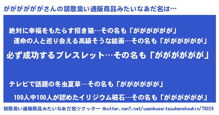 | 2回繰り返すあだ名 | 『がががが』『ぎょぎょ』『ぶらぶら』 |