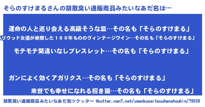 | 男性向けラノベタイトル風あだ名 | 『ソラノスケマルアートオンライン』 |