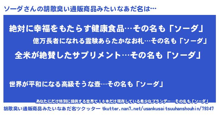| 意味不明あだ名 | 『とにかく怪しいソーダ』 |