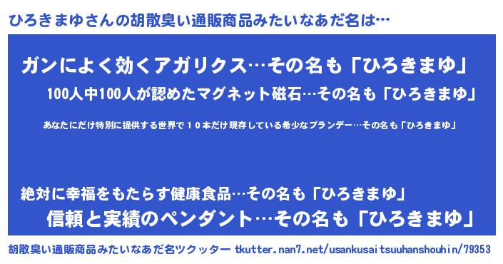 | 男性向けラノベタイトル風あだ名 | 『この素晴らしい世界にひろきまゆを!』 |