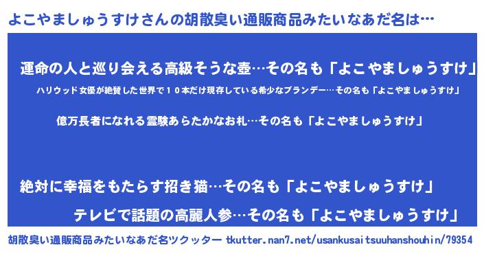 | 恥ずかしいあだ名 | 『プリティーよこやましゅうすけ』 |