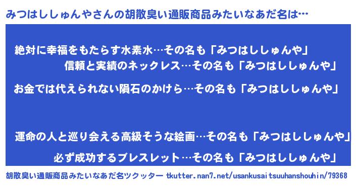 | 意味不明あだ名 | 『眠気覚ましガムみつはししゅんや味』 |