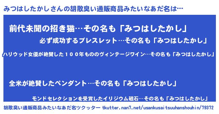 | 意味不明あだ名 | 『住所不定無職みつはしたかし(5歳)』 |