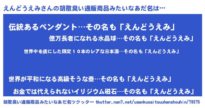 | 意味不明あだ名 | 『住所不定無職えんどうえみ(39歳)』 |