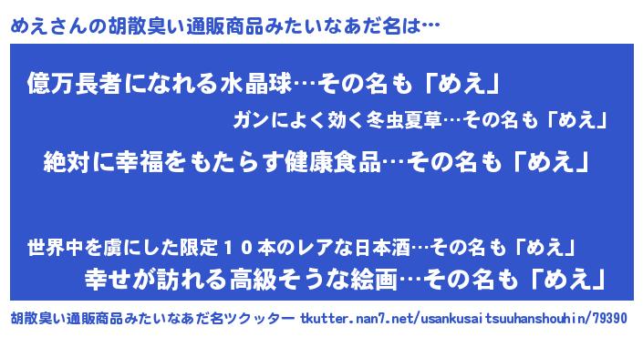 | 意味不明あだ名 | 『永久保存めえ』『ペロリンめえ』 |