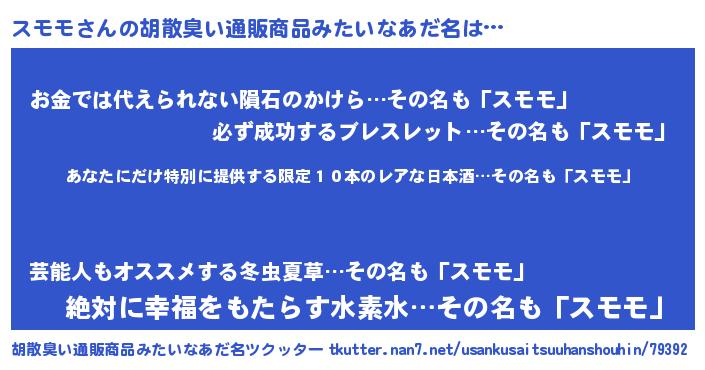 | 意味不明あだ名 | 『住所不定無職スモモ(40歳)』 |