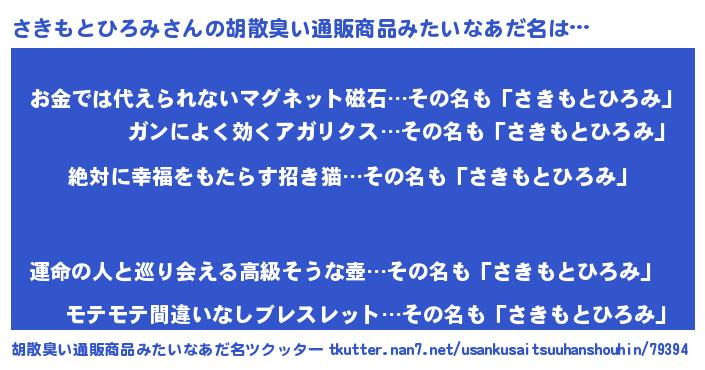 | 男性向けラノベタイトル風あだ名 | 『さきもとひろみという概念が存在しない退屈な世界 』 |