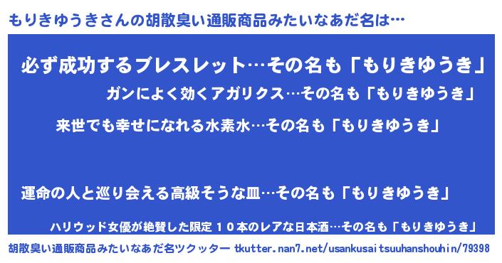 | 意味不明あだ名 | 『永久保存もりきゆうき』 |