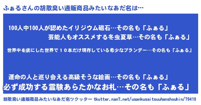 | 意味不明あだ名 | 『住所不定無職ふぁる(84歳)』『自称ふぁる』 |