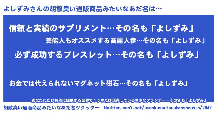 | ヘコむあだ名 | 『よしにー』『よしを』『酢こんぶ』 |