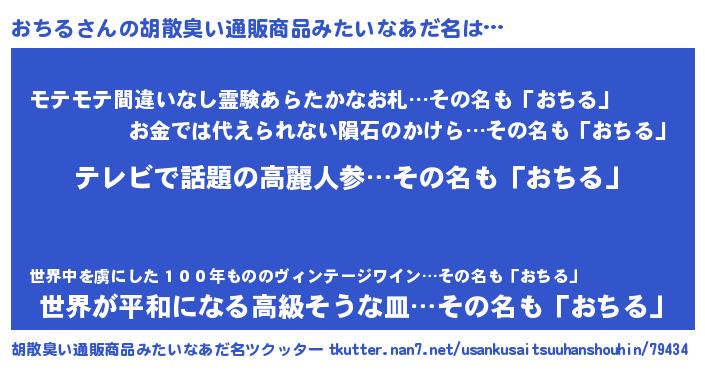 | 恥ずかしいあだ名 | 『オチルデラックス』『プリティーおちる』 |