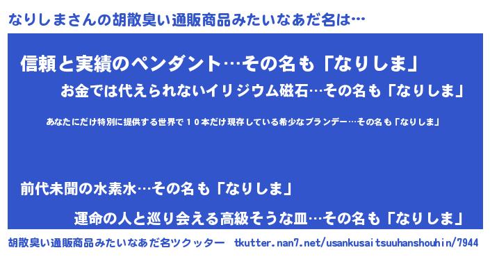| 意味不明あだ名 | 『住所不定無職なりしま(95歳)』 |