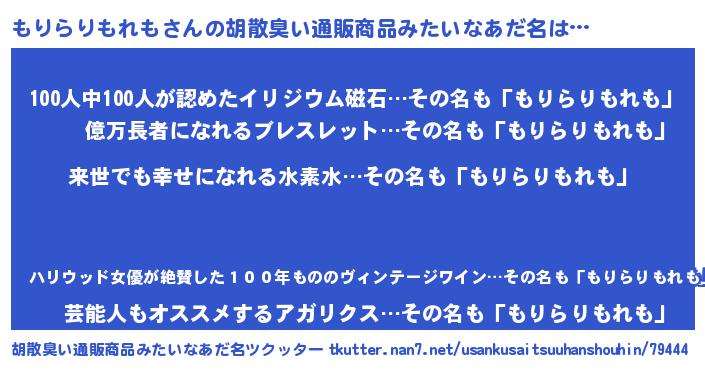 | ヘコむあだ名 | 『もりらりもれも(震え声)』『もりにゅー』 |