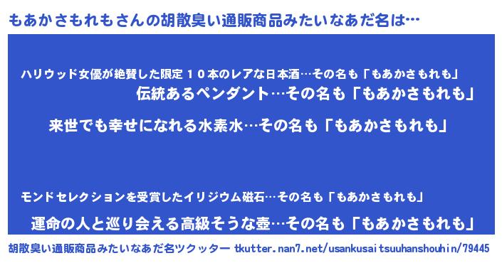 | 意味不明あだ名 | 『永久保存もあかさもれも』 |