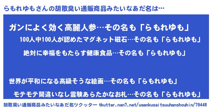 | ヘコむあだ名 | 『らもれゆも(爆)』『らもにー』 |