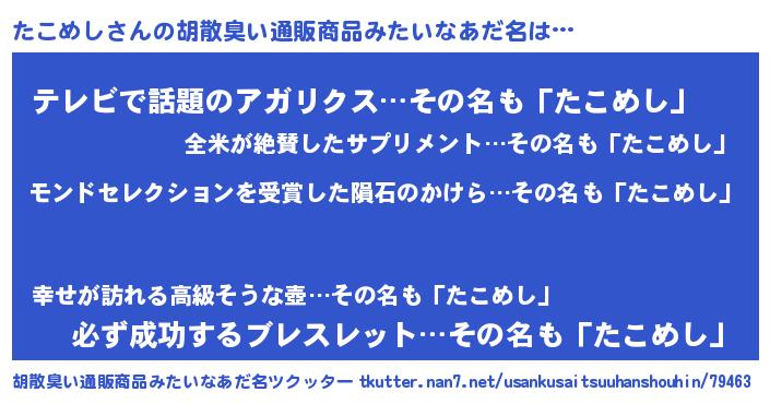 | 男性向けラノベタイトル風あだ名 | 『うちのたこめしが世界を掌握している!』 |