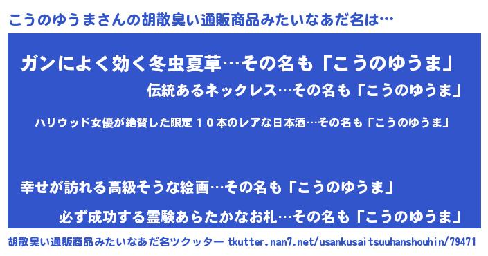 | 意味不明あだ名 | 『めかぶ科こうのゆうま属』 |
