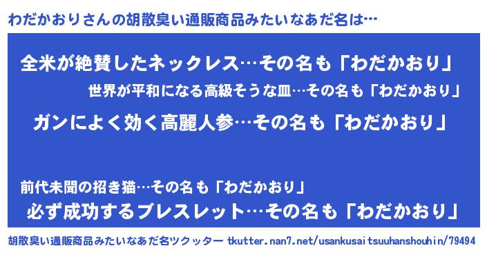 | ポケモン風あだ名 | 『ワダセウス』『ヒワダカオリ』 |