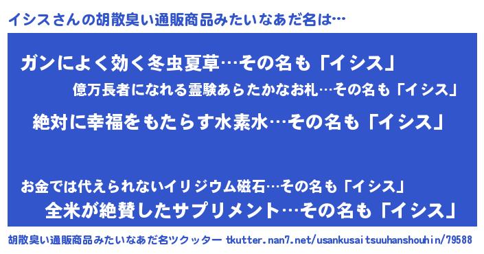 意味不明あだ名 | 『エリンギ科イシス属』『永久保存イシス』 |