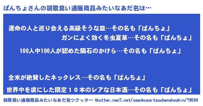 | 男性向けラノベタイトル風あだ名 | 『バンチョスレイヤー』 |