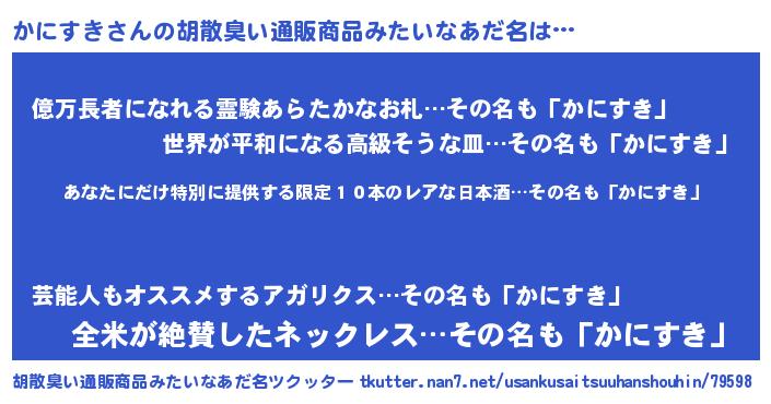 意味不明あだ名 | 『住所不定無職かにすき(47歳)』 |
