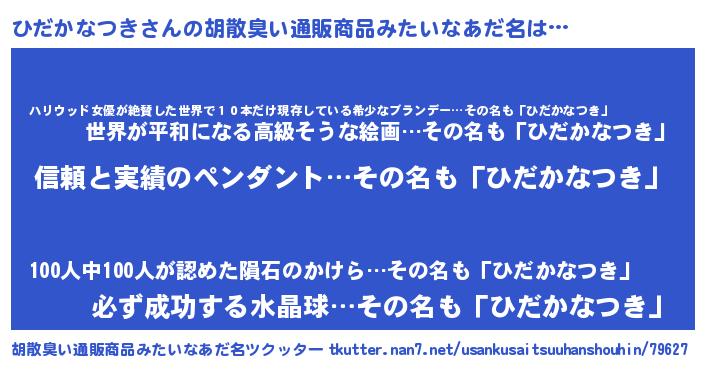 | 意味不明あだ名 | 『とにかく怪しいひだかなつき』 |
